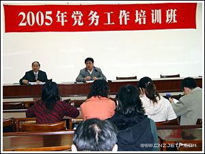 11月22日下午,在学院视频会议室举办二〇〇五年度党务工作培训班。会议由党委书记童学敏主持,组织部李国华、沈贵林对学院党建工作作了有关说明,童书记对学院的党建工作提出希望。各系总支、党支部委员和行政直属党支部委员参加培训。