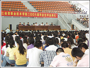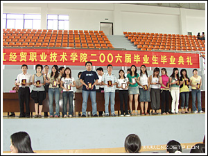 教师代表人文旅游系张俊磊老师和2006届毕业生代表现代物流200302班黄栋同学分别在会上作了发言。会上还宣布了2006届省级、校级优秀毕业生名单,学院领导分别为优秀毕业生颁奖。