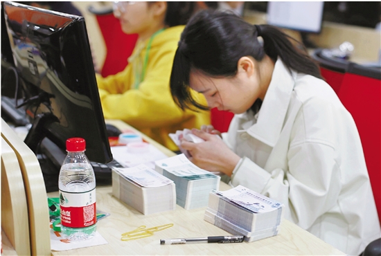 现场硝烟弥漫。出纳项目的比拼,需要参赛者快速清点放在面前的100、50、20和10元面额的四叠钞票。比赛一开始,参赛者卯足劲低头数起钞票,手指飞快转动,有的嘴上还默念着数字。