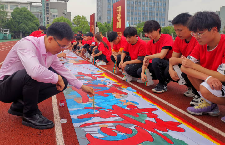 百米党史长卷由红船精神、井冈山精神、长征精神、遵义会议精神、延安精神、西柏坡精神、红岩精神、抗美援朝精神、“两弹一星”精神、特区精神、抗洪精神、抗震救灾精神和抗疫精神等十三个板块组成。学子们用彩笔素描、水彩泼墨、铅笔勾勒等技艺巧妙运用色彩搭配、精心构思画面,绘制出壮阔的时代画卷,一笔一画深情地表达出对党的感恩之情和对祖国的美好祝愿。现场,《我和我的祖国》《红旗飘飘》《没有共产党就没有新中国》等一首首脍炙人口的经典红歌伴着或悠扬、或高亢、或欢快的旋律陆续登场,数百名师生徜徉在红色经典的海洋里。