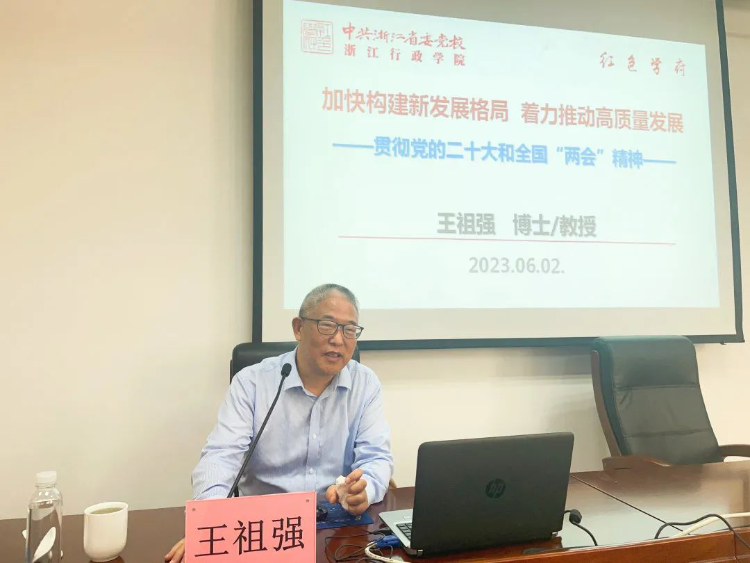 王祖强围绕构建新发展格局是把握主动权的战略部署,高质量发展是全面建设现代化国家的首要任务,全面深化改革探索实现高质量发展的有效途径三个方面,就如何贯彻党的二十大和全国“两会”精神,深入理解新发展理念,推进高质量发展进行了阐述和讲解。整场报告主题鲜明、内容丰富、数据详实、论述精辟,对党员干部深刻理解、准确把握习近平新时代中国特色社会主义思想提供了科学索引,对供销社坚定不移沿着习近平总书记指引道路感恩奋进,为谱写中国式现代化浙江篇章贡献供销力量,具有指导性意义。