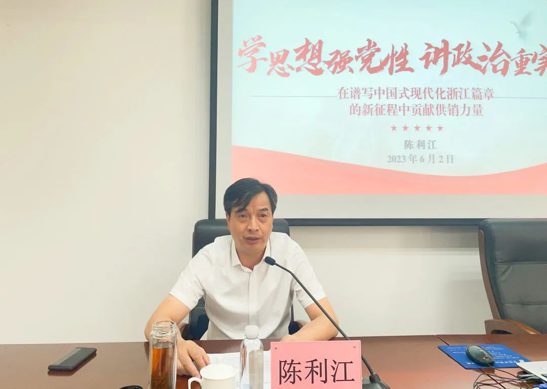 陈利江以《学思想强党性 讲政治重实践 在谱写中国式现代化浙江篇章的新征程中贡献供销力量》为题,围绕“政治建设”这一主题,从党的政治建设发展历史进程、政治建设引领供销合作事业蓬勃发展、当前省供销社在政治建设领域存在的突出问题和如何抓好政治生态建设等方面讲了一堂思想深刻、内容丰富、脉络清晰、视野开阔的党课。