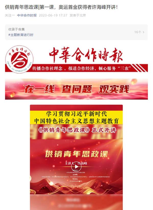 中华合作时报 | 供销青年思政课|第一课,奥运首金获得者许海峰开讲!