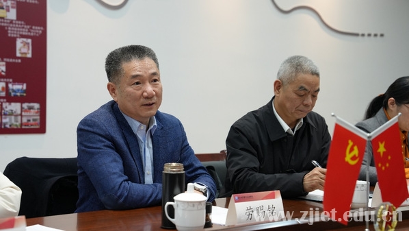 劳赐铭对嵊州校友会一直以来关心帮助母校发展表示衷心感谢,并简要介绍了近年来学校事业发展情况和办学成果。他表示,校友是学校发展最宝贵的资源,是学校高质量发展的重要力量,校友是学校发展历程中的直接参与者、见证人,更是坚定的支持者。他强调,学校特别重视和支持与校友企业的合作、平台的建设,推动双方产学研双向融合,为企业输送高素质技术技能人才,助力校友企业创新发展。他指出,学校将进一步加强与校友间的沟通交流,不断创新校友联络服务机制,推进多层面校友工作体系建设,更好地凝聚校友、关心校友、服务校友,为学校新一轮的高质量发展凝聚力量,实现学校与校友企业双向赋能的新局面。同时,他代表学校向全体校友们致以最诚挚的问候和最美好的新春祝福。